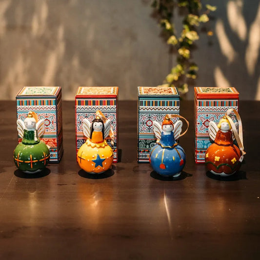 Designer ceramic balls 4 angels with bells as Christmas decoration