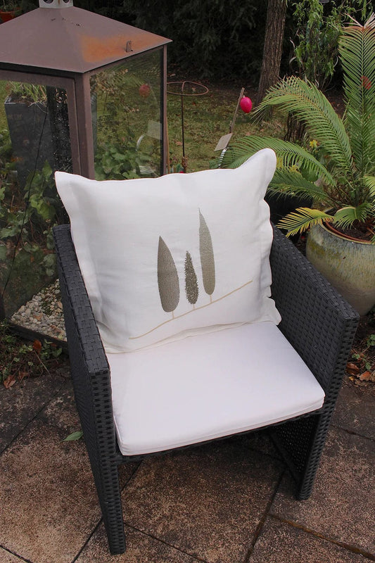 Cushion cover white, with cypresses embroidery - 50Co/50Li Made in Italy