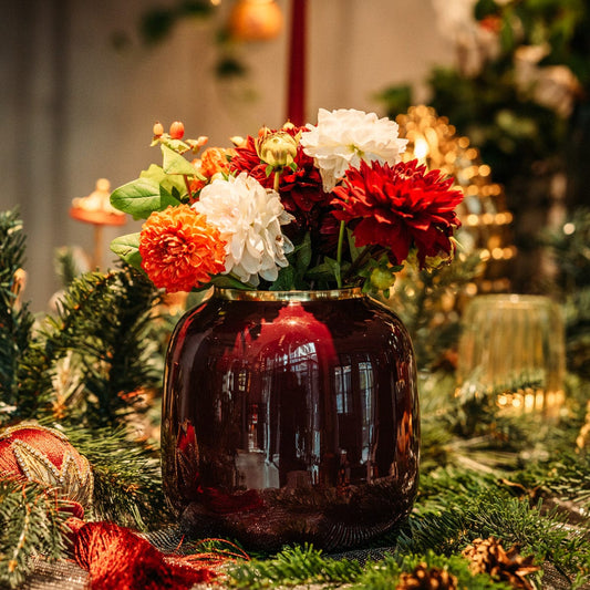 Designer vase made of glass burgundy red with gold rim H 6.29" Ø 6.69"