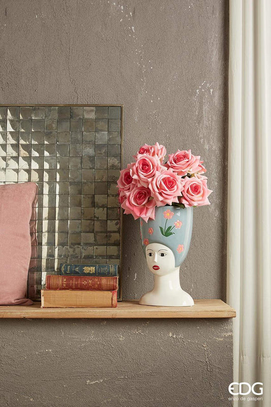 Decorative vase Italian woman with brown hair - ceramic H 8.7 Ø 5.1"