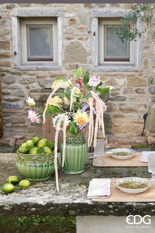 For example, take a look at our strawberry vases or the lemon vases. They are the best proof of Italian designer vases. The strawberry vases are impressive with their detailed workmanship and the natural finish of the vase surface, while the lemon vases and also the lime vases reflect the highest level of craftsmanship. Each fruit is made and fired individually, then connected to the vase and then the whole vase is painted and fired several times.