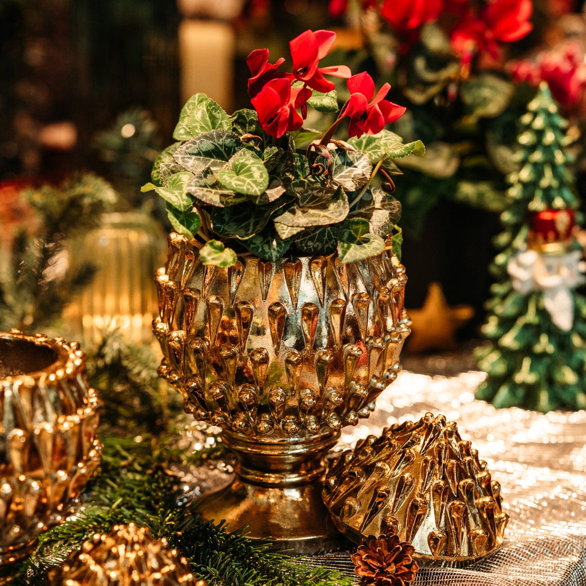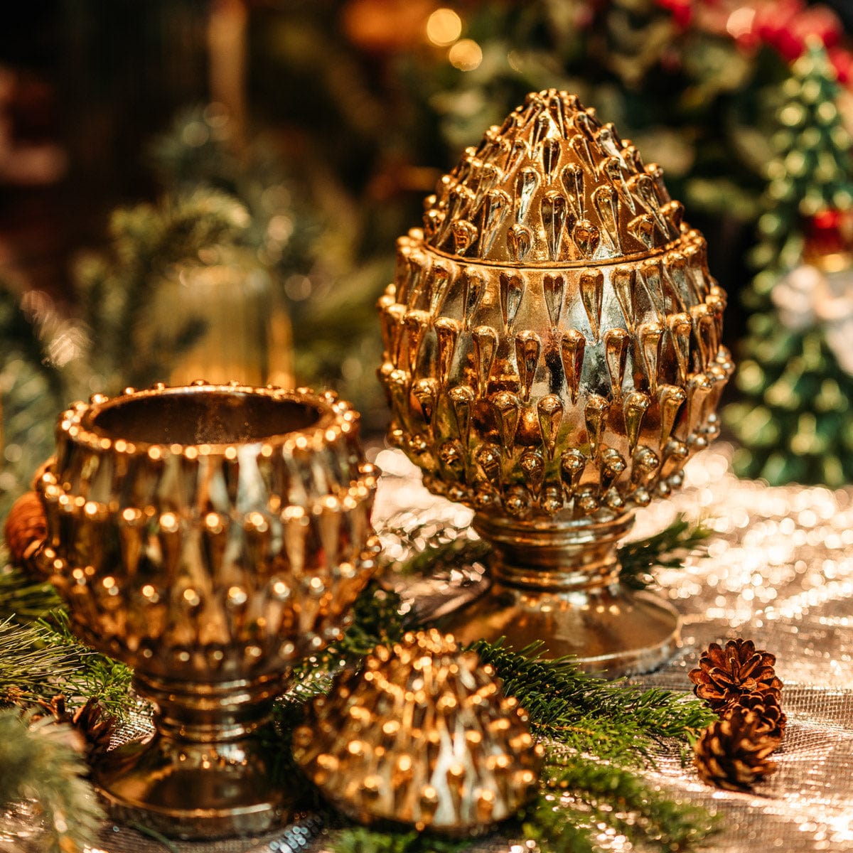 Pine cone with gold lacquer and lid H 9.4" Ø 5.9"